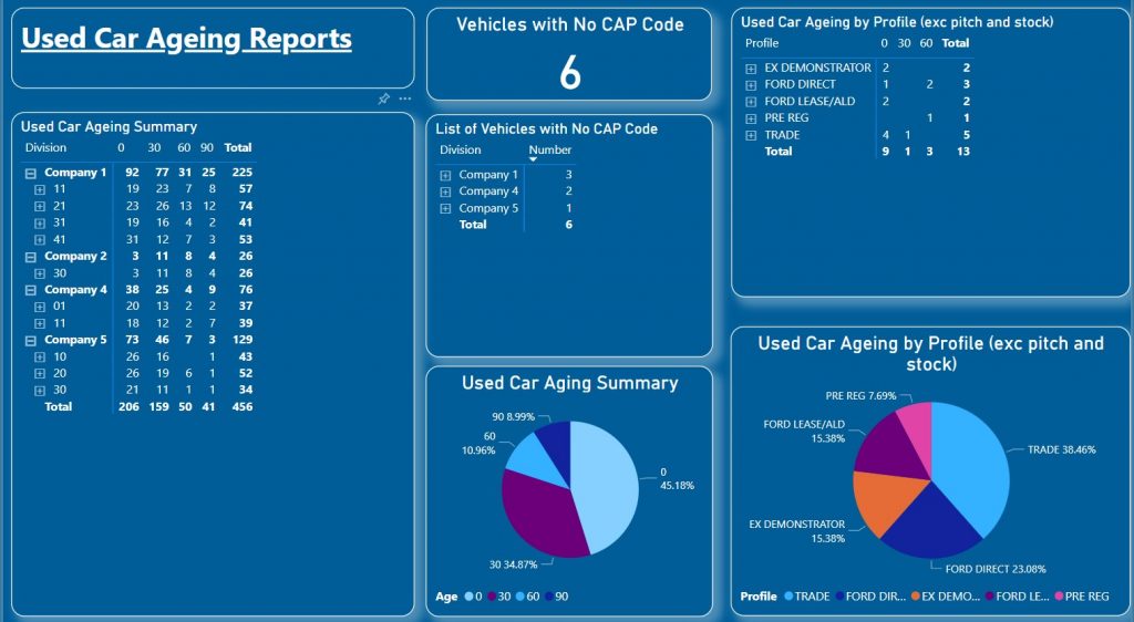 This report shows vehicle stock by your chosen age banding and stock profile.